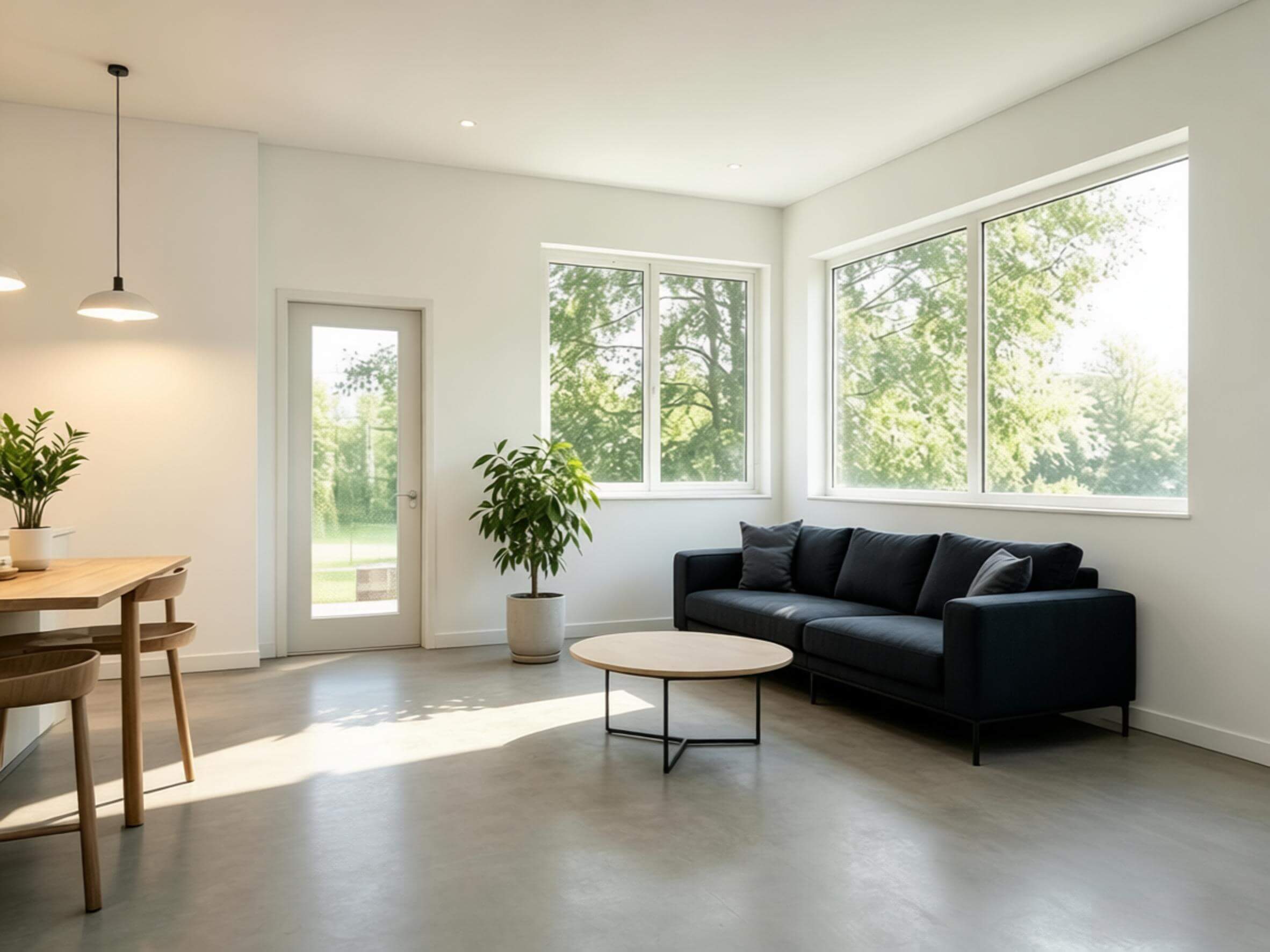 A brighter modern direction with cleaner lines, simpler furniture, and a more open feel.